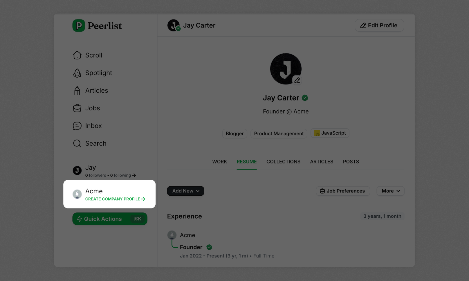 - Create a personal profile on Peerlist. In case you don’t have an account, you can sign up here