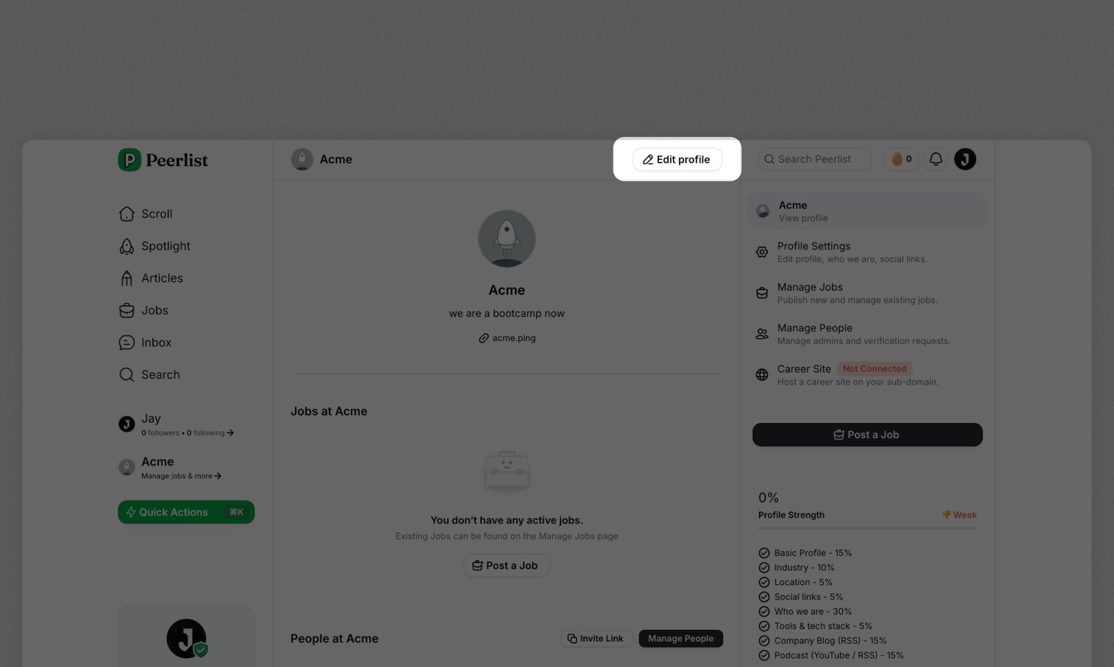 Go to Company Profile settings by clicking on “Edit Profile”