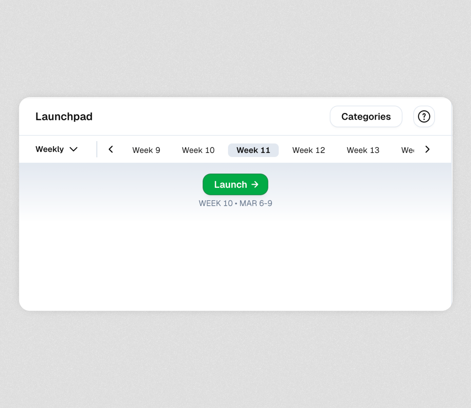 Monday is a launch day. The launchpad is open through Mondays, every week.Access Launchpad on Launch Day