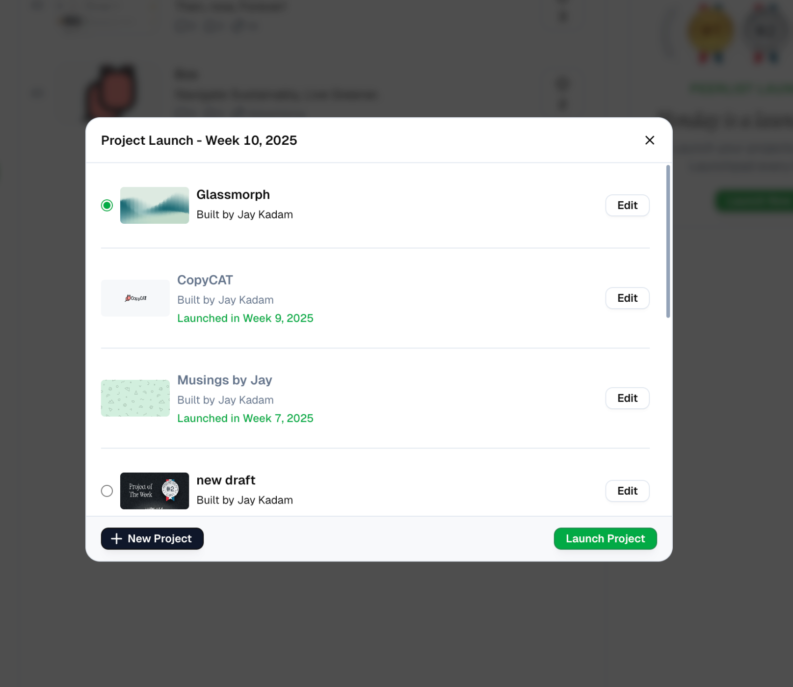 You must have a Verified Peerlist Profile to be able to launch a project on the Peerlist Launchpad.Add a project to your profile